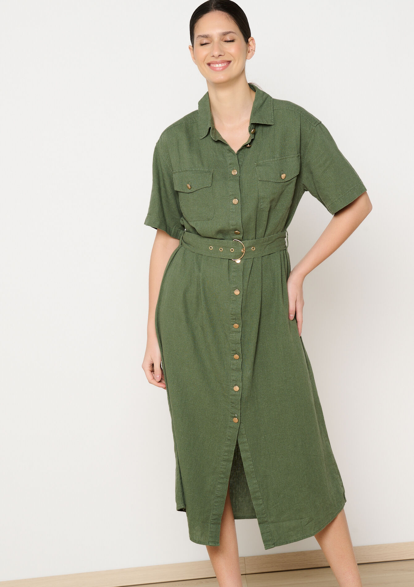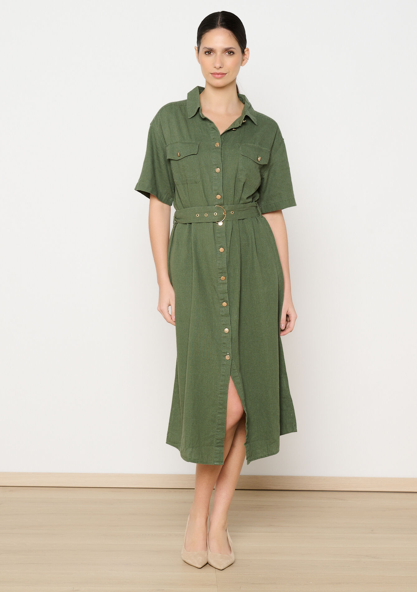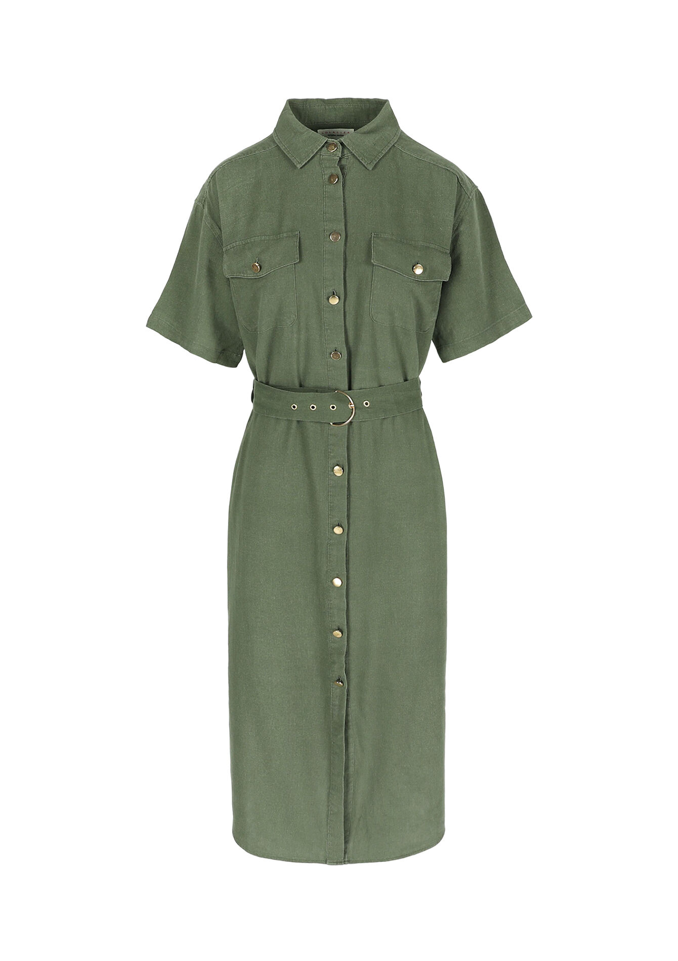 Robe-chemise avec ceinture - KHAKI MED - 08103880_4327