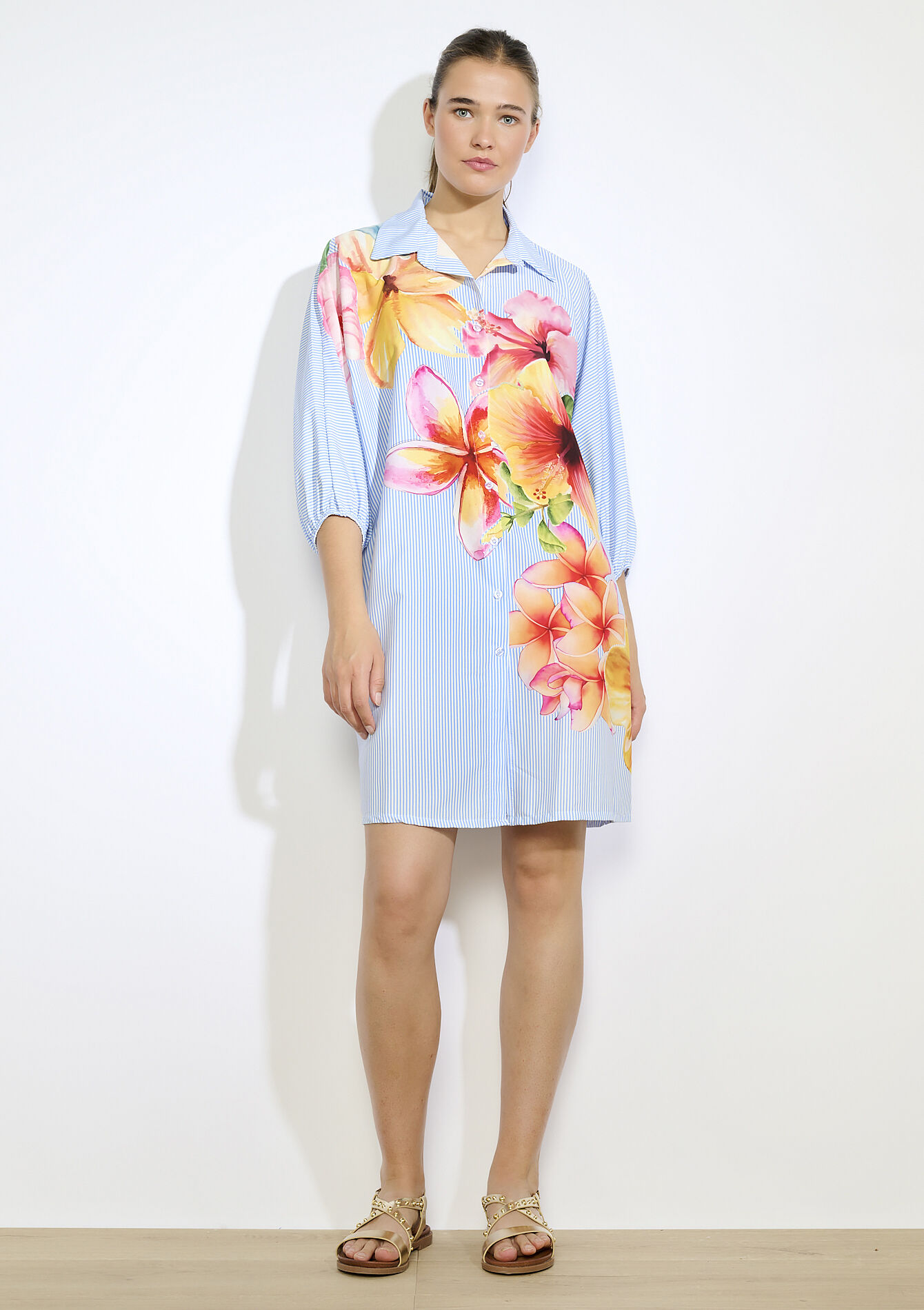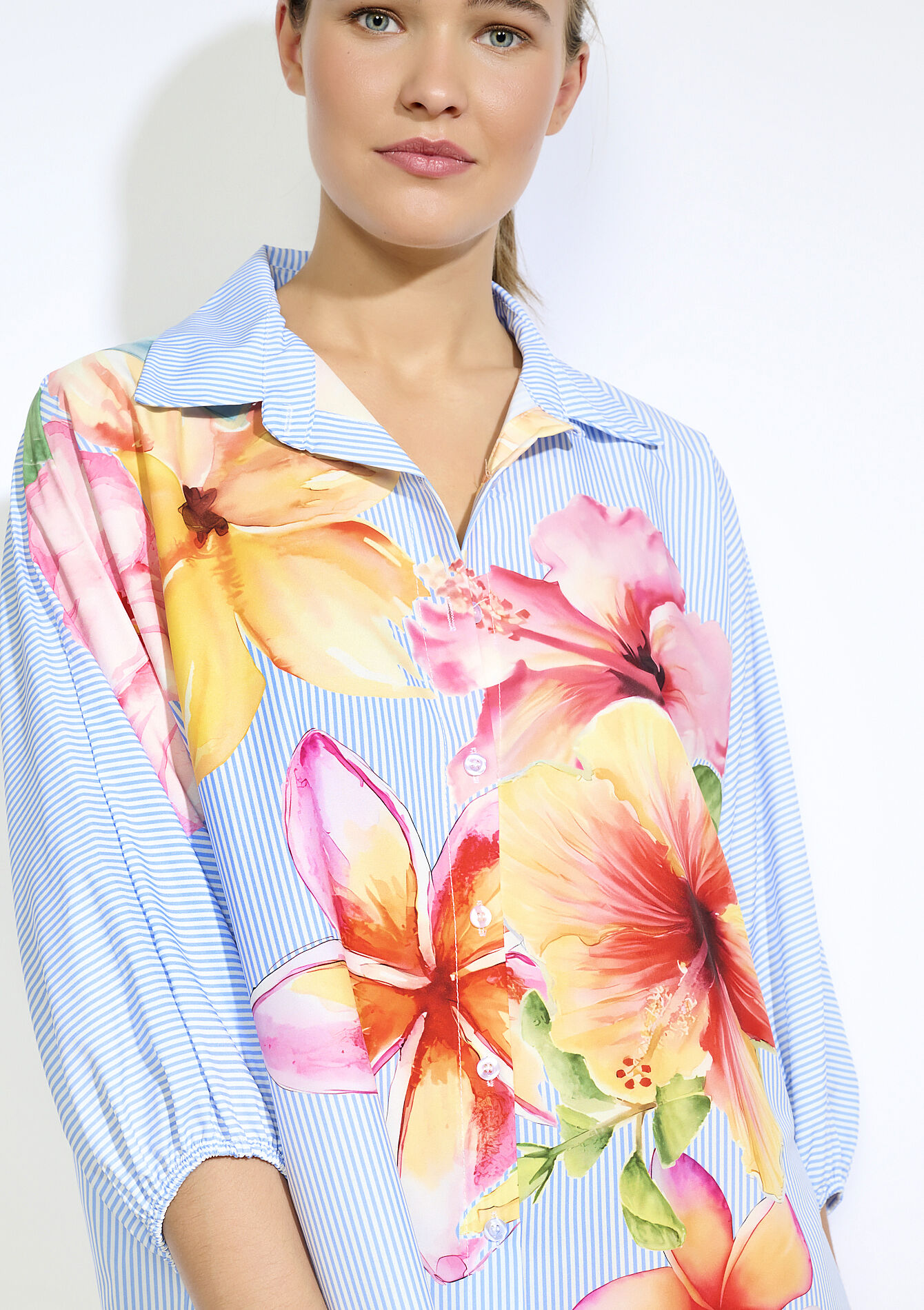 Oversized shirt dress featuring a bold floral print. Artistic and relaxed, it?s a standout piece for warm-weather styling.