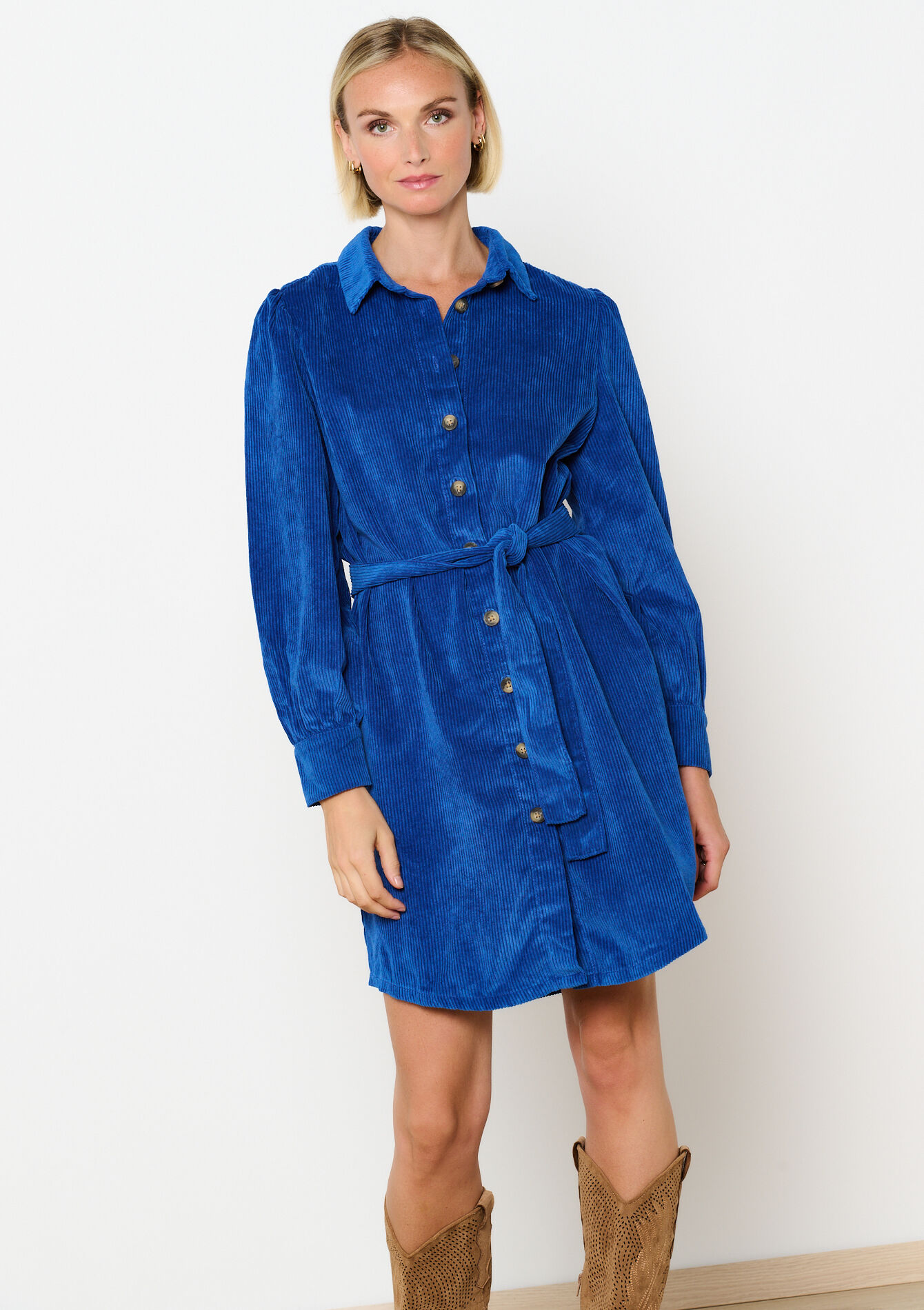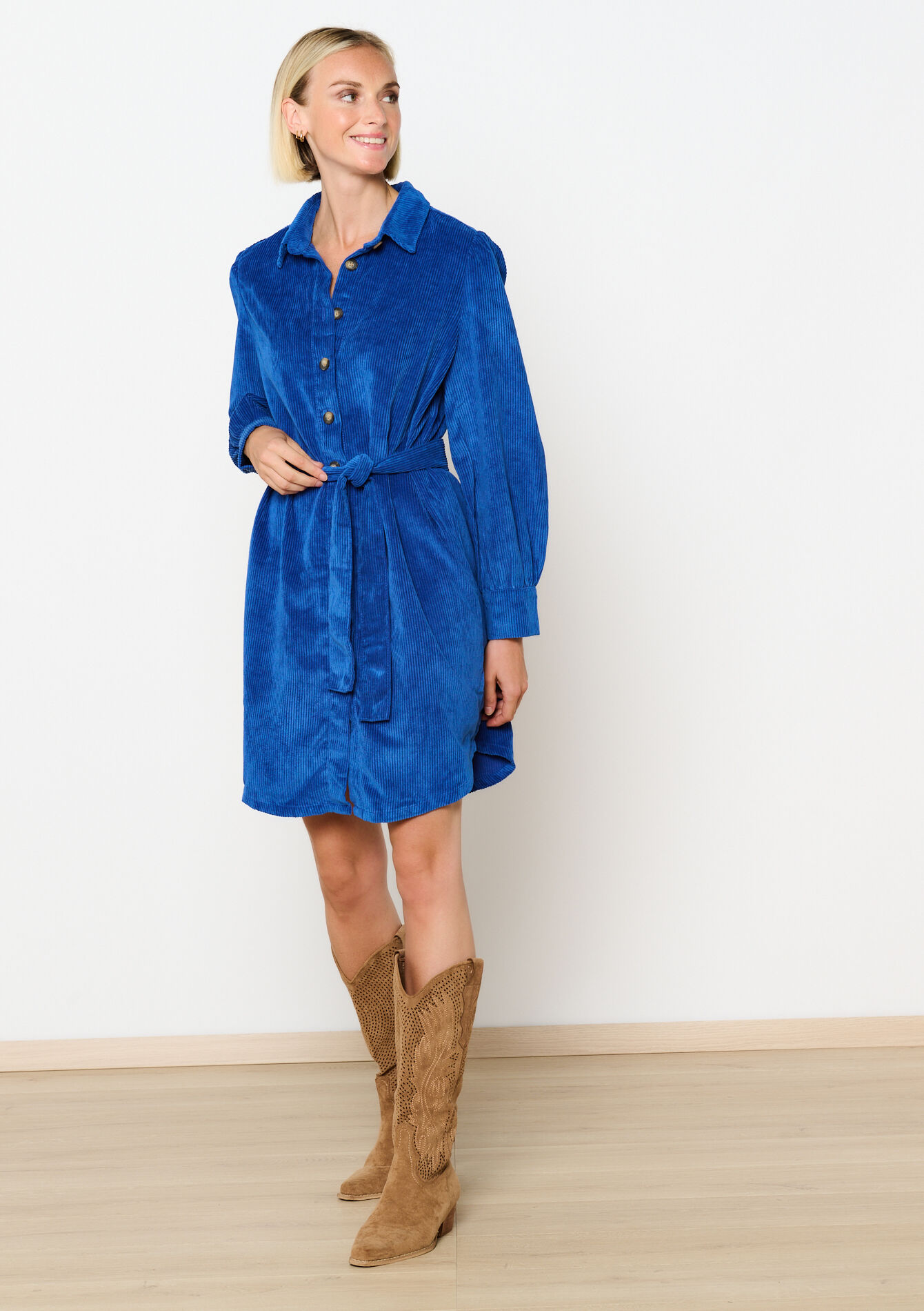 Robe-chemise avec manches ballon - ELECTRIC BLUE - 08103592_1619