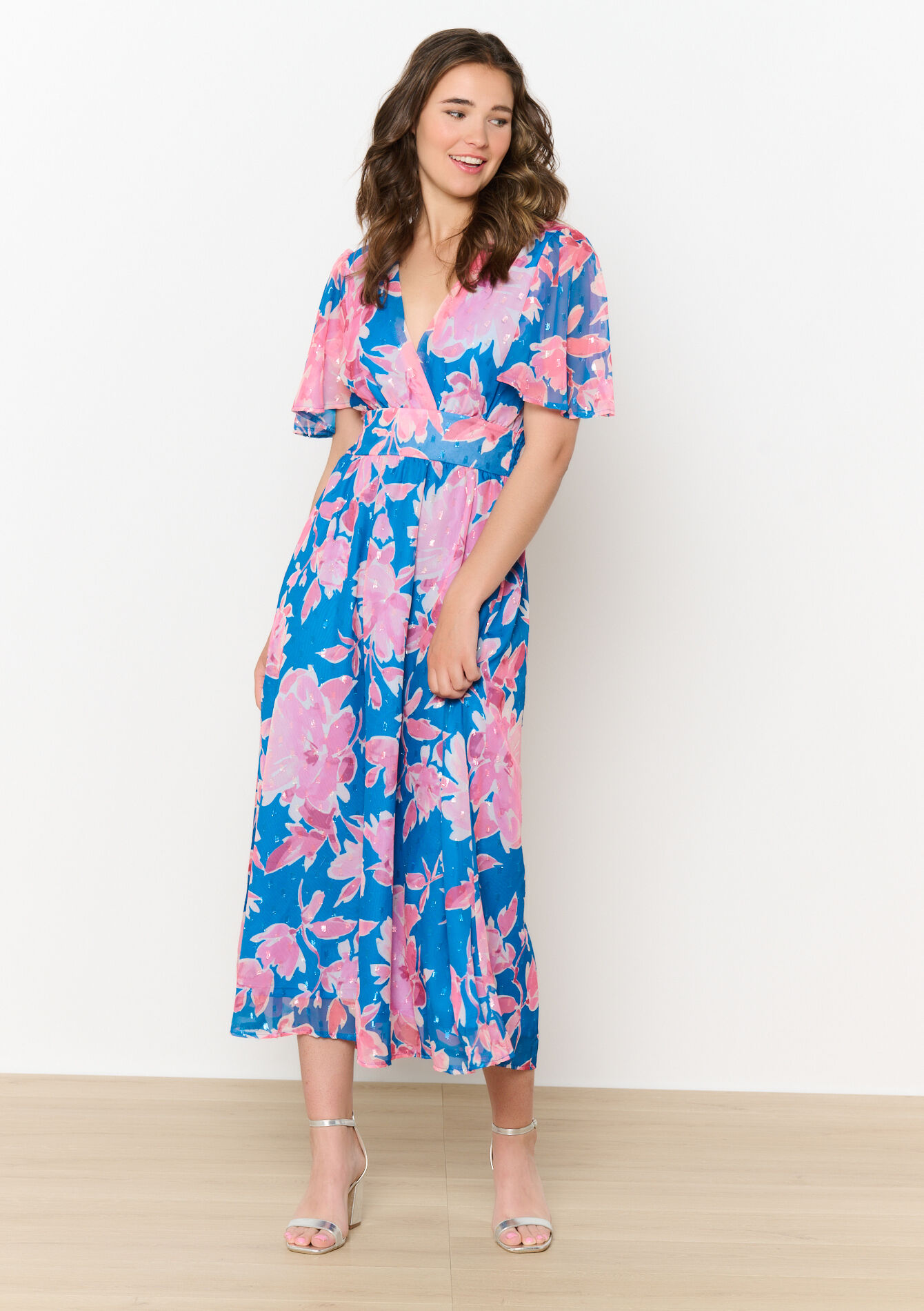 Light and lovely, this floral dress flatters with a cinched waist and flowing silhouette. A romantic pick for sun-drenched days and effortless elegance.