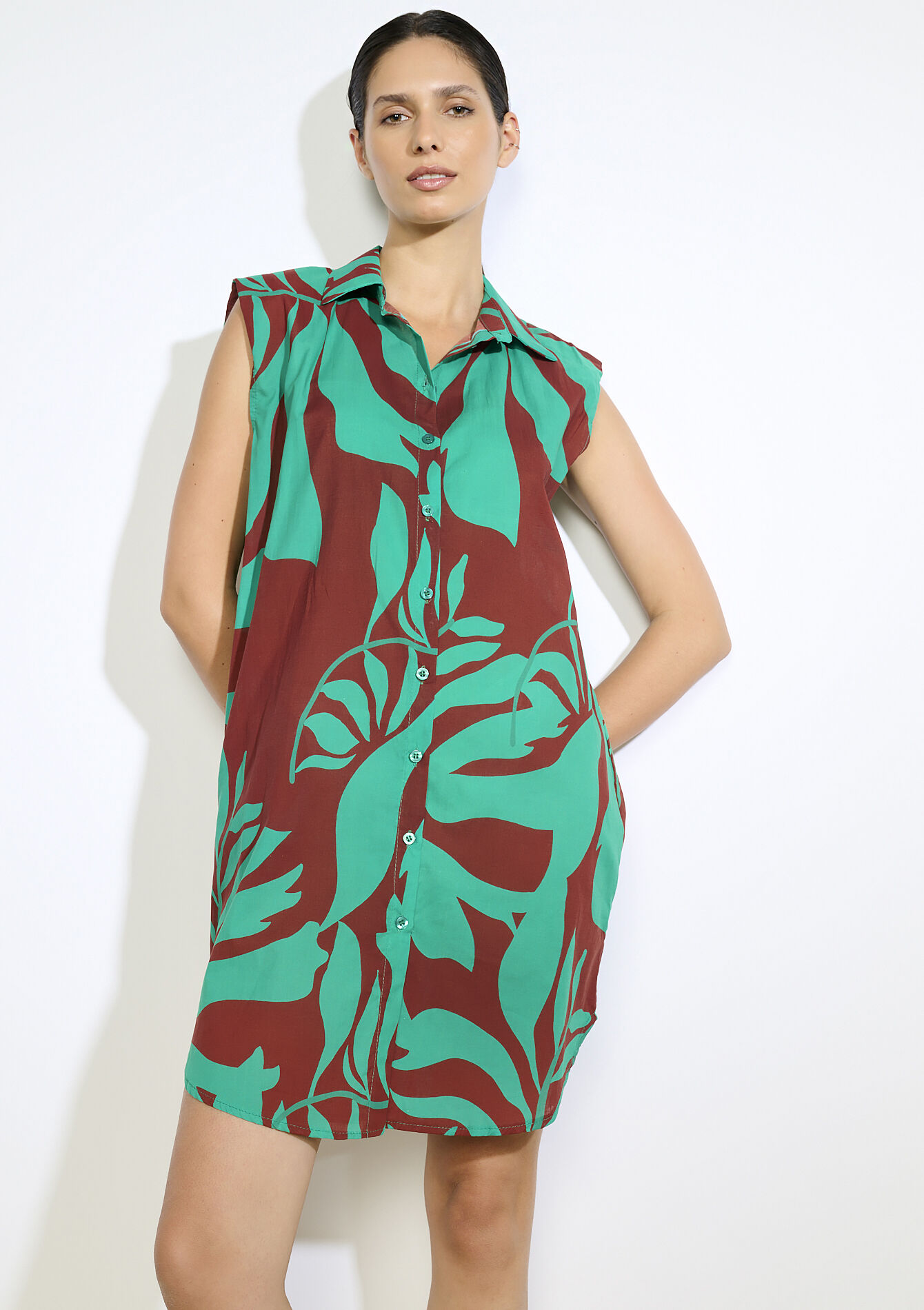 Relaxed, sleeveless fit with a shirt-inspired cut and bold graphic print. Effortless summer style worn solo or layered.