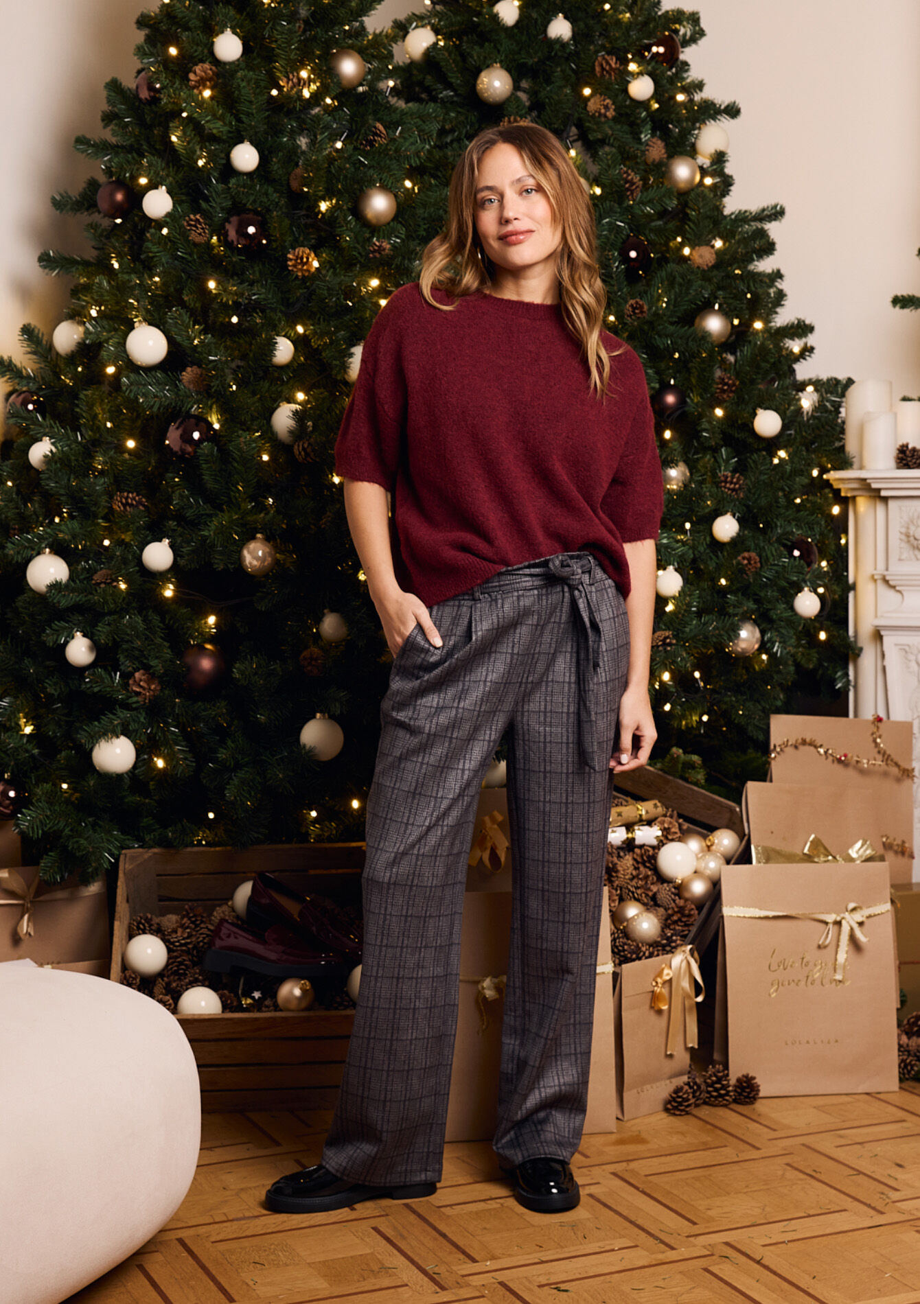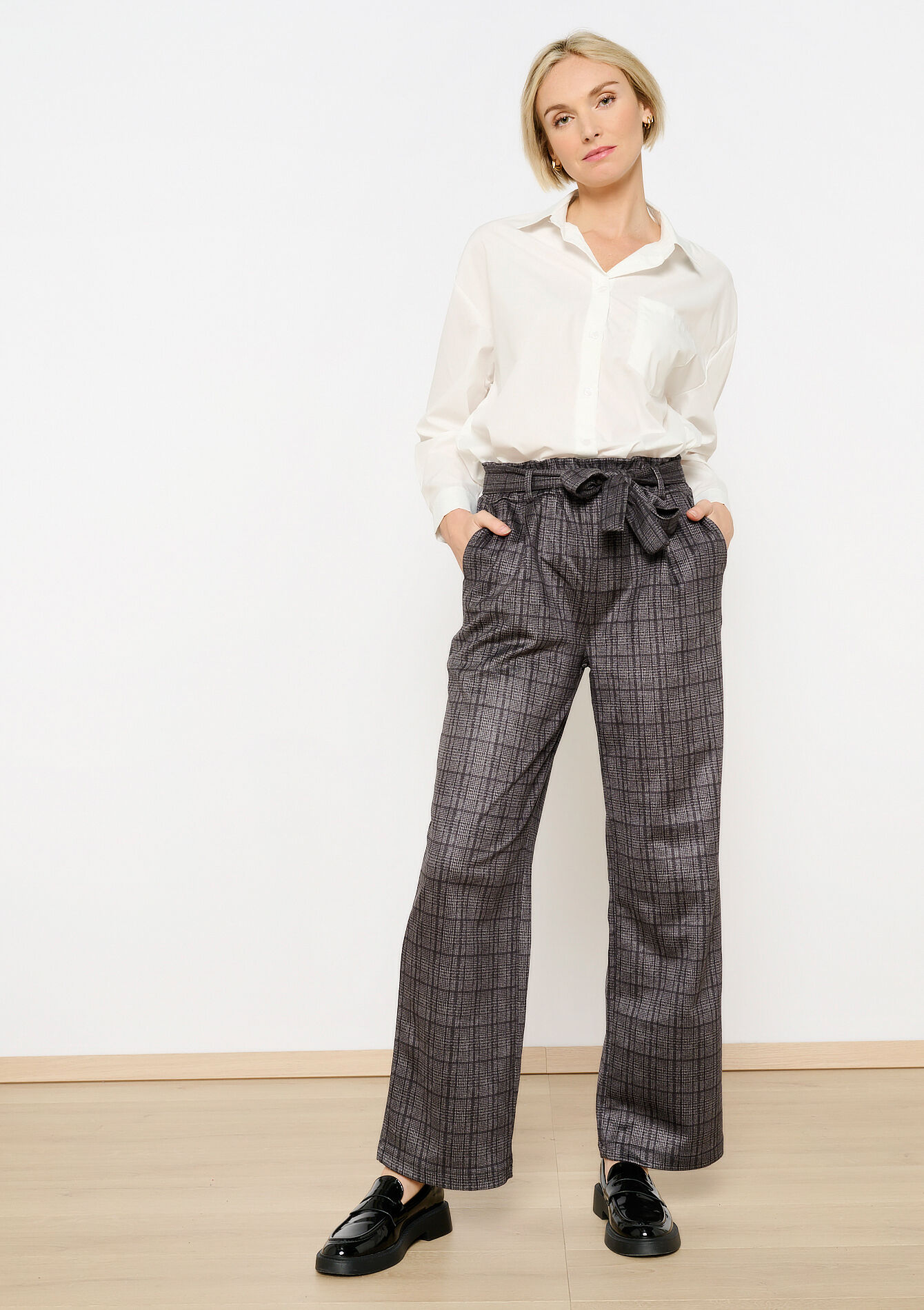 Geruite suede broek