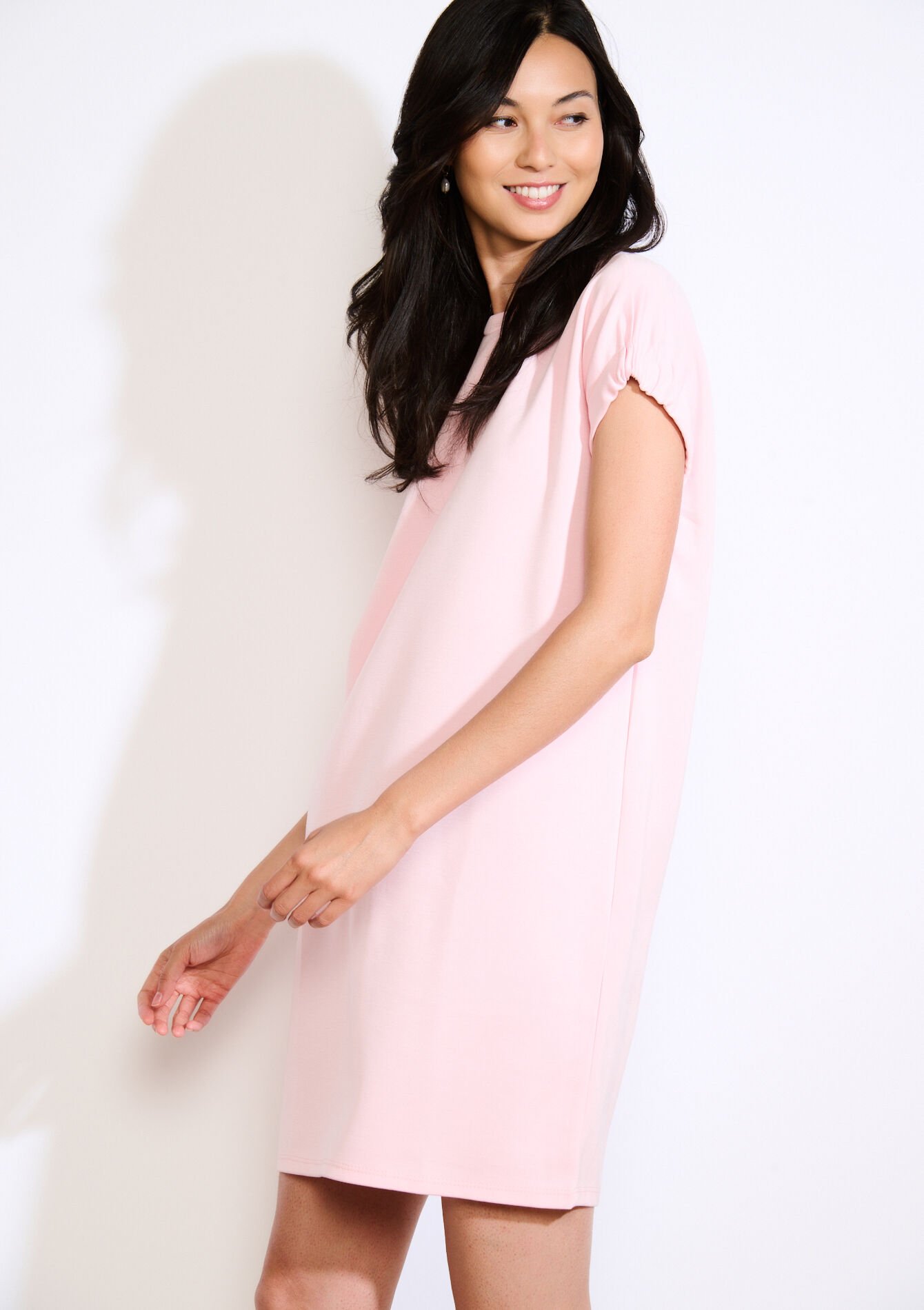 Zacht, minimalistisch t-shirtjurkje. Eenvoudig en comfortabel voor elke dag.