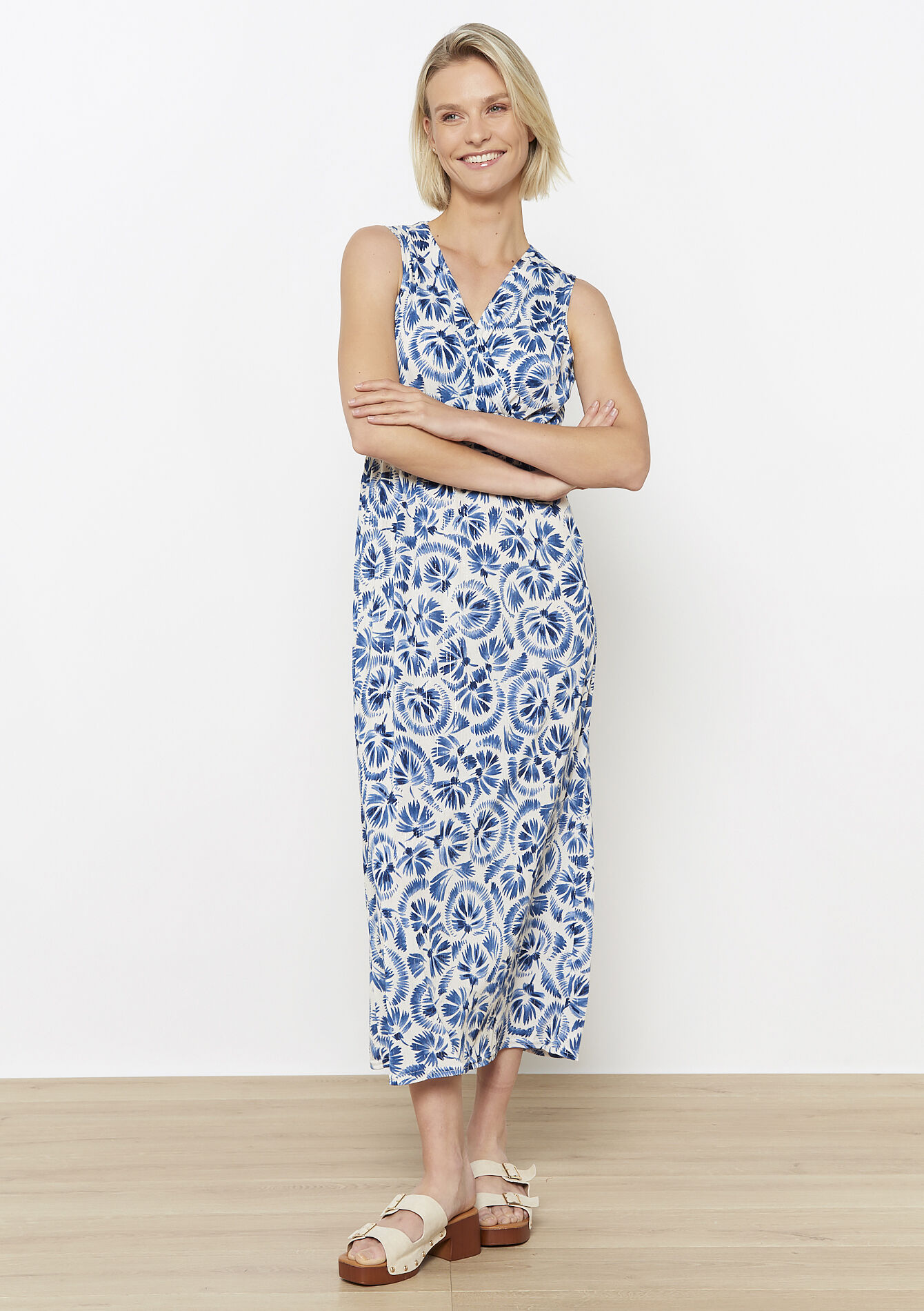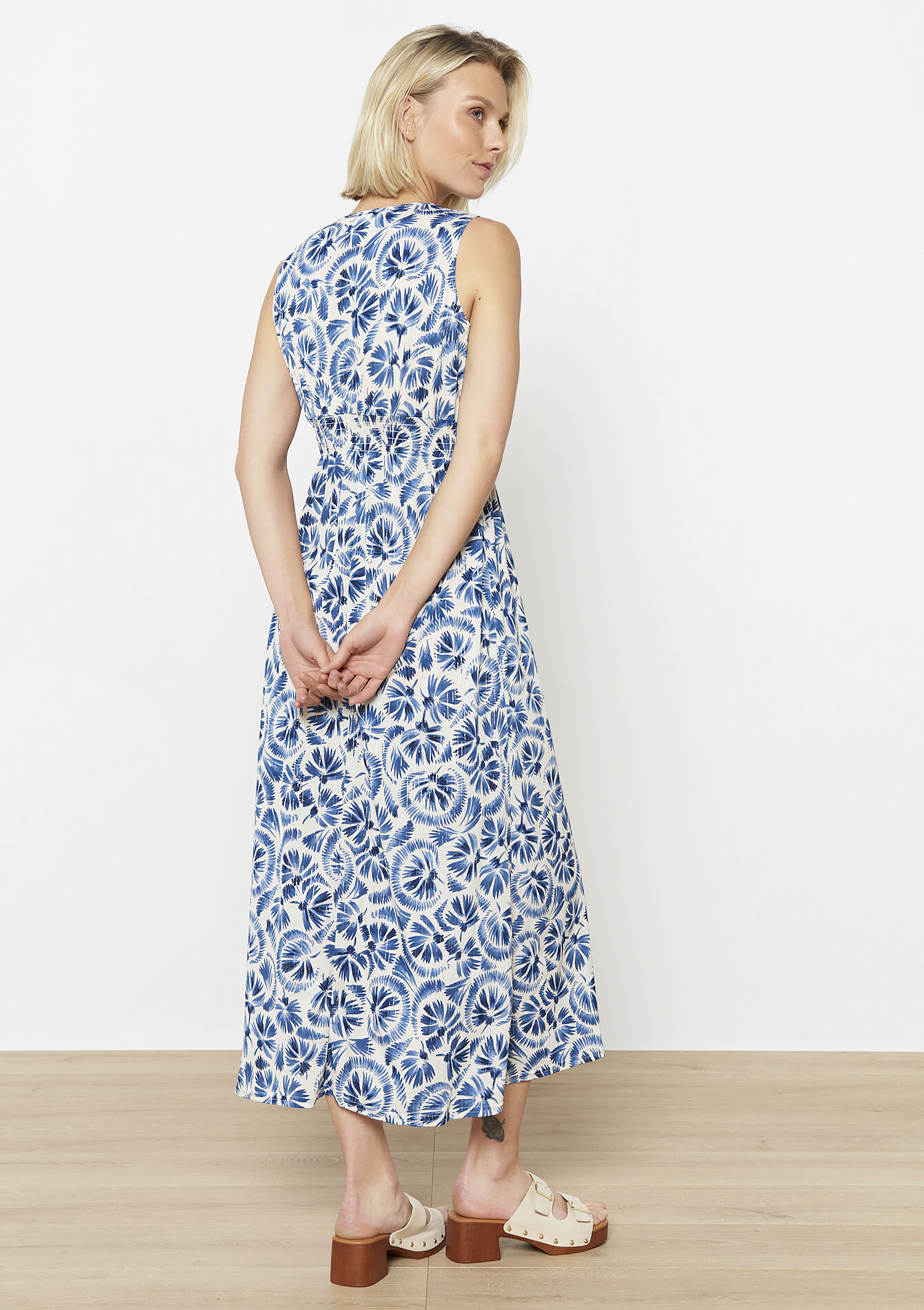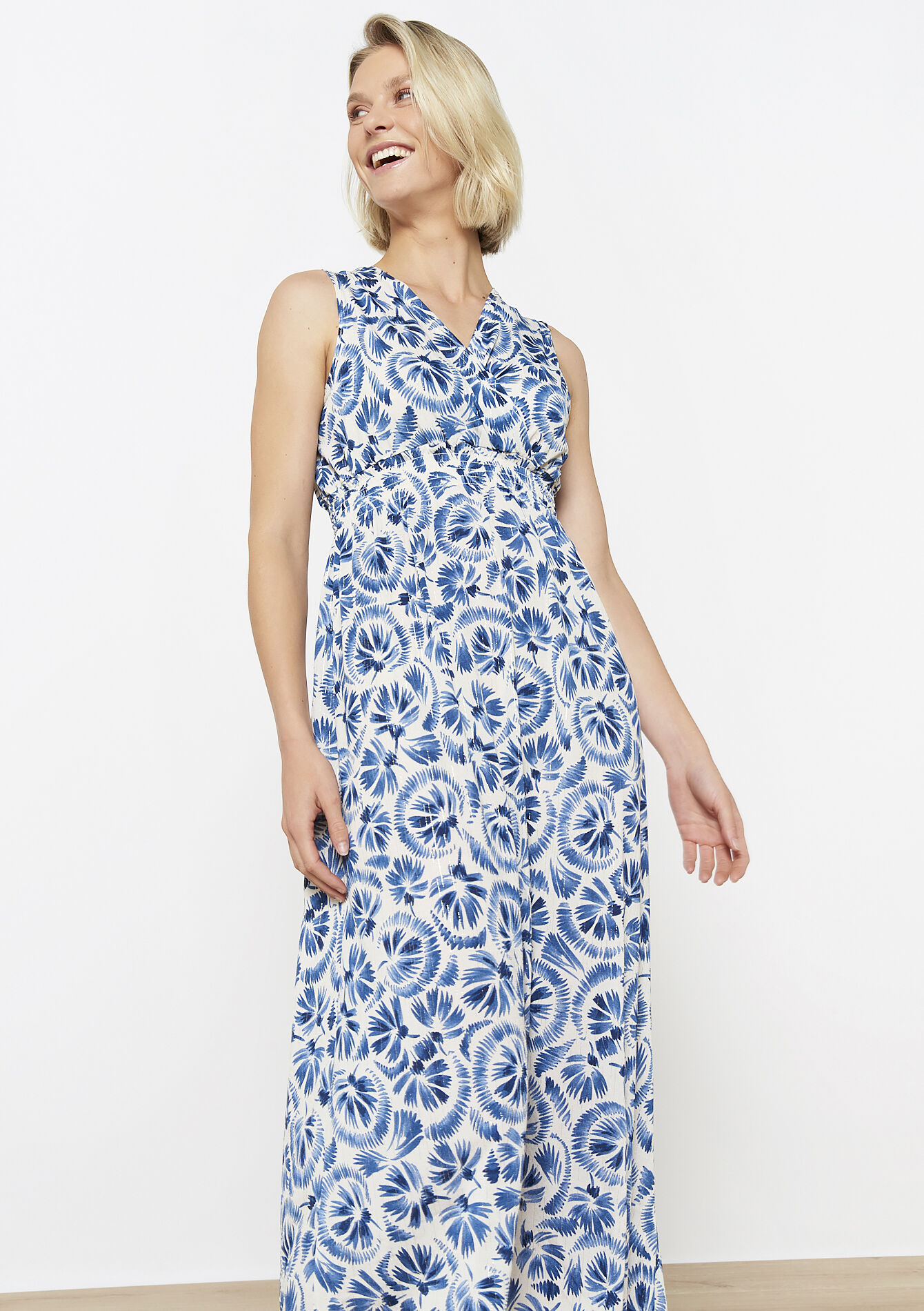 Mouwloze maxi-jurk met grafische print. De overslaghals en geaccentueerde taille zorgen voor een vrouwelijk silhouet.